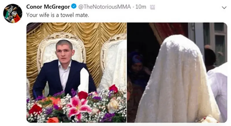 Usually when fighters trash talk, it’s an unofficial rule that you don’t talk about family members. McGregor went for the jugular and called the devout Muslim’s wife a ‘towel.’ He swiftly deleted the tweet but not before MMA publications had screengrabbed it. Fans lost even more respect for him after this.