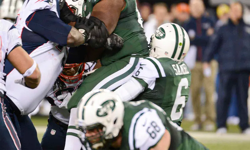 The Patriots took a 14-0 lead in the second quarter when Sanchez tried to make something happen. Sanchez attempted to offload to Lex Hillard but he wasn’t there. The QB scrambled to make something else happen. But he ran headfirst into Brandon Moore’s backside (via Sports Illustrated). The replays were immediate and cruel because it was a hilarious moment. Unfortunately, it became Sanchez’s legacy.