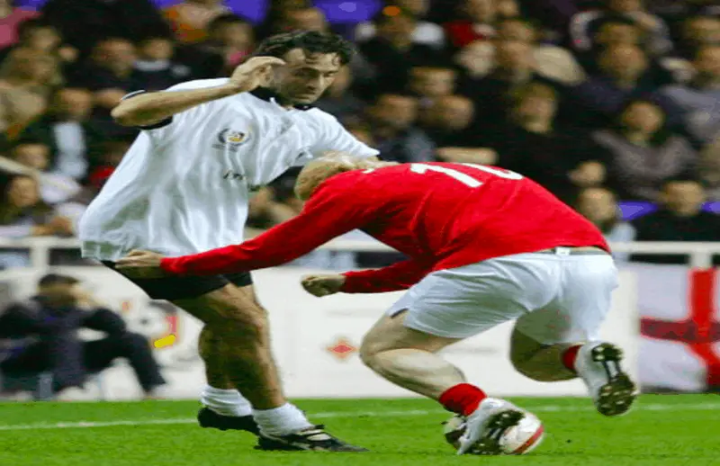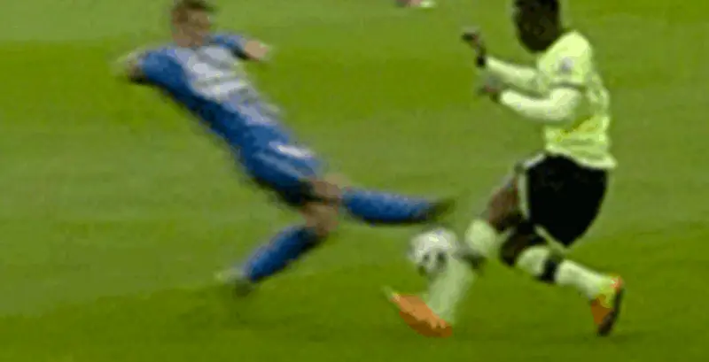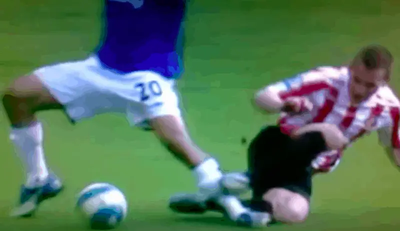 The tackle happened down by the touchline at Old Trafford. Giggs was in possession when Brown launched in like a torpedo. He made no attempt to play the ball, appearing to deliberately stamp on the Manchester United legend’s knee. Once again, the referee only booked him. A ludicrous decision because this was pure filth.