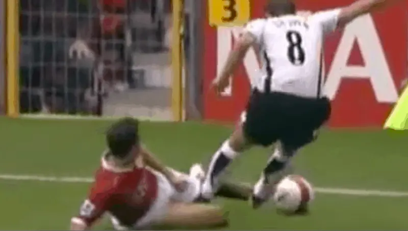 Let’s start this off with what’s just a proper atrocious tackle. Carlisle United was playing Arsenal in the third round of the FA Cup back in 2001 when this psychotic attempted assault happened. Patrick Viera was one of the best players in the world at the time, dominating the midfield for Arsenal. Carlisle’s Richard Prokas decided to do something about the Frenchman.