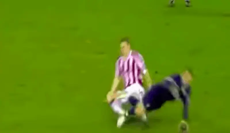 It might be hard to imagine but there was a Manchester City before their oil-rich Abu Dhabi investors took over and this is what it looked like. Ben Thatcher was playing against Portsmouth in 2006 when for some reason he decided to commit GBH on Pedro Mendes. Instead of shouldering him or sliding in like a normal person, he shoulder charged Mendes, sending him sprawling.