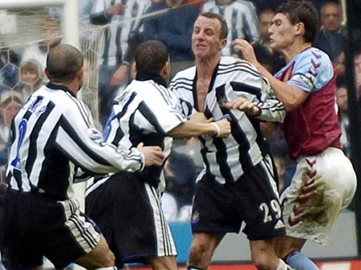The next thing they were throwing punches at each other. It was a wild clash with both men taking shots to the face and Bowyer’s shirt ripped. The referee sent off both players. Then manager Graeme Souness made them sit next to each other and apologize in a press conference.