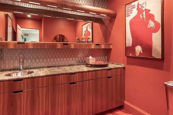Mahomes y su esposa Brittney favorecen un ambiente retro dentro de su casa familiar. Este baño refleja esta visión porque optaron por una pintura roja atrevida. No es fácil lograr esto, pero lo hicieron con éxito. El póster de Lenin es un toque interesante por la razón que sea.
