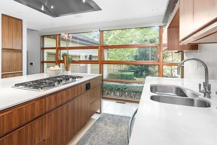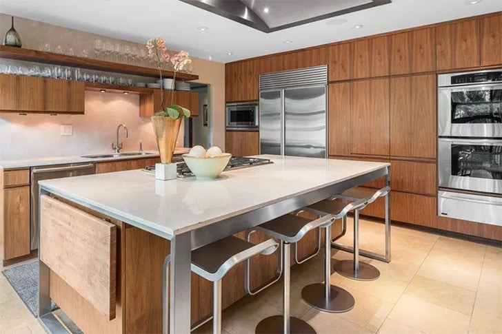 Aquí hay otra vista de su fabulosa cocina. Una vez más, usan mucha madera para mantener una apariencia natural. Hay algo muy relajante en esta estética en comparación con el minimalismo blanco que muchas celebridades prefieren. Esto es cálido pero ordenado, por lo que es muy acogedor y efectivo.