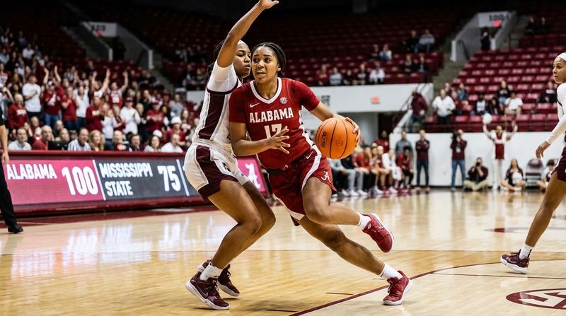 Alabama’s offense was firing on all cylinders, reaching the 100-point mark and displaying the kind of efficiency and depth that has made them a top-20 team this season. The Crimson Tide established a substantial lead in the first half and never looked back, overwhelming Mississippi State with consistent scoring across the roster.