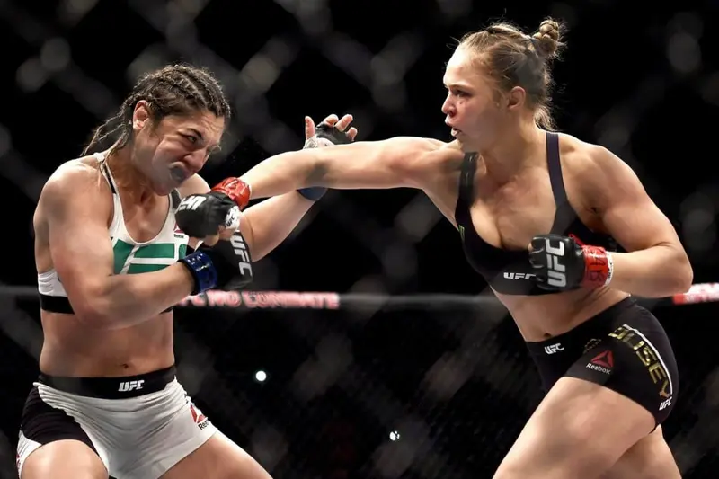 An Olympic judoka and Strikeforce champion, Rousey was one of few athletes who were able to convince UFC President Dana White to change his mind. White claimed he would never allow women to fight for the world’s largest MMA promotion, but her performances and charisma made all the difference. She met Liz Carmouche in the main event of UFC 157 in Anaheim, California. This fight truly set her on the path to greatness. ‘Rowdy’ crushed Carmouche with a devastating first-round armbar.