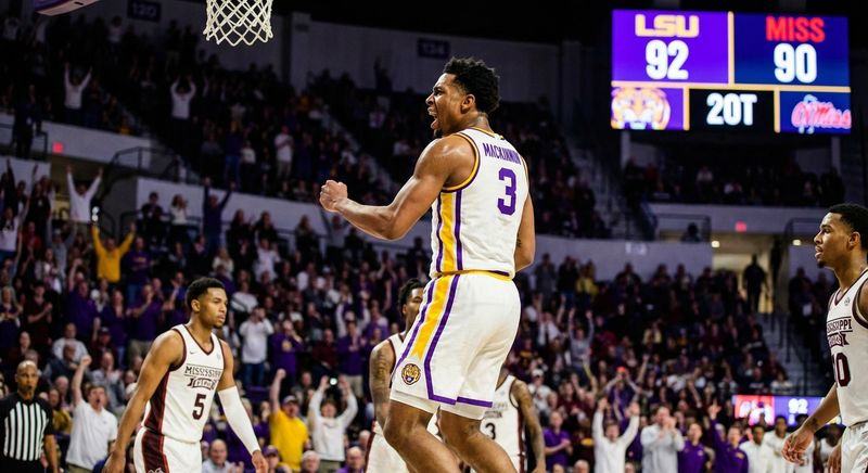 LSU snapped its five-game losing streak in spectacular fashion Wednesday night, riding a career night from Max Mackinnon to outlast Mississippi 106-99 in double overtime. Mackinnon poured in a season-high 34 points, including 11 critical points in the second overtime, to help the Tigers secure a much-needed victory in front of their home crowd.