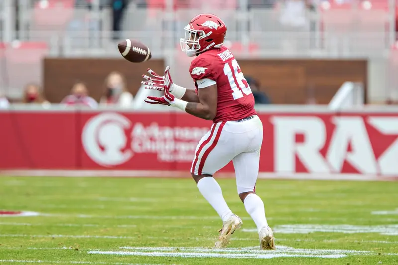 At least, he’s not capable of bringing Brown’s peak levels of productivity yet. We’re not saying that he won’t eventually live up to Mike Vrabel’s expectations but it’s unlikely to happen in his rookie year. Nonetheless, he’s likely to receive a baptism of fire (via Arkansas Razorbacks).