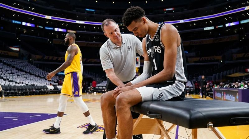 San Antonio Spurs guard Stephon Castle was ruled out for the remainder of Tuesday’s game against the Los Angeles Lakers after suffering a pelvic contusion in the second quarter. The incident occurred when Castle landed hard on his back, prompting immediate concern from the team’s medical staff and resulting in his early exit from the contest.