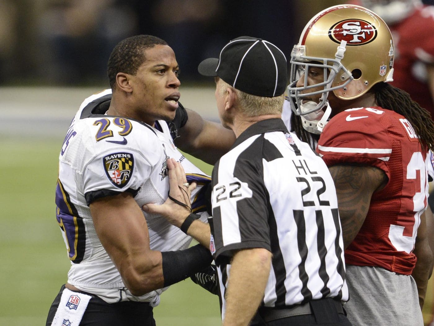 The 2012 season saw more controversial calls than most because of the referee strike. It was also a story of the Super Bowl even though they had experienced officials. A fracas erupted between the Ravens and the Niners in the second quarter. Ed Reed intercepted Colin Kaepernick’s pass and it all kicked off.