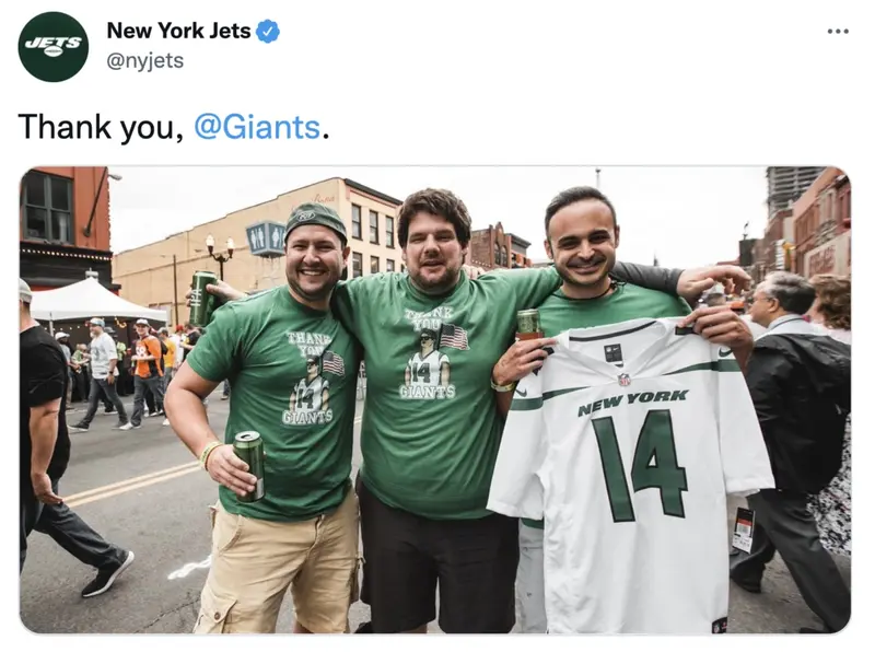 Big Blue used the second-overall pick to select Saquon Barkley in 2018. Then the Jets immediately chose Sam Darnold as their franchise quarterback. He flamed out after three horrible seasons. But the Jets wrote: “Thank you @Giants” in a tweet that aged very badly (via USA Today).