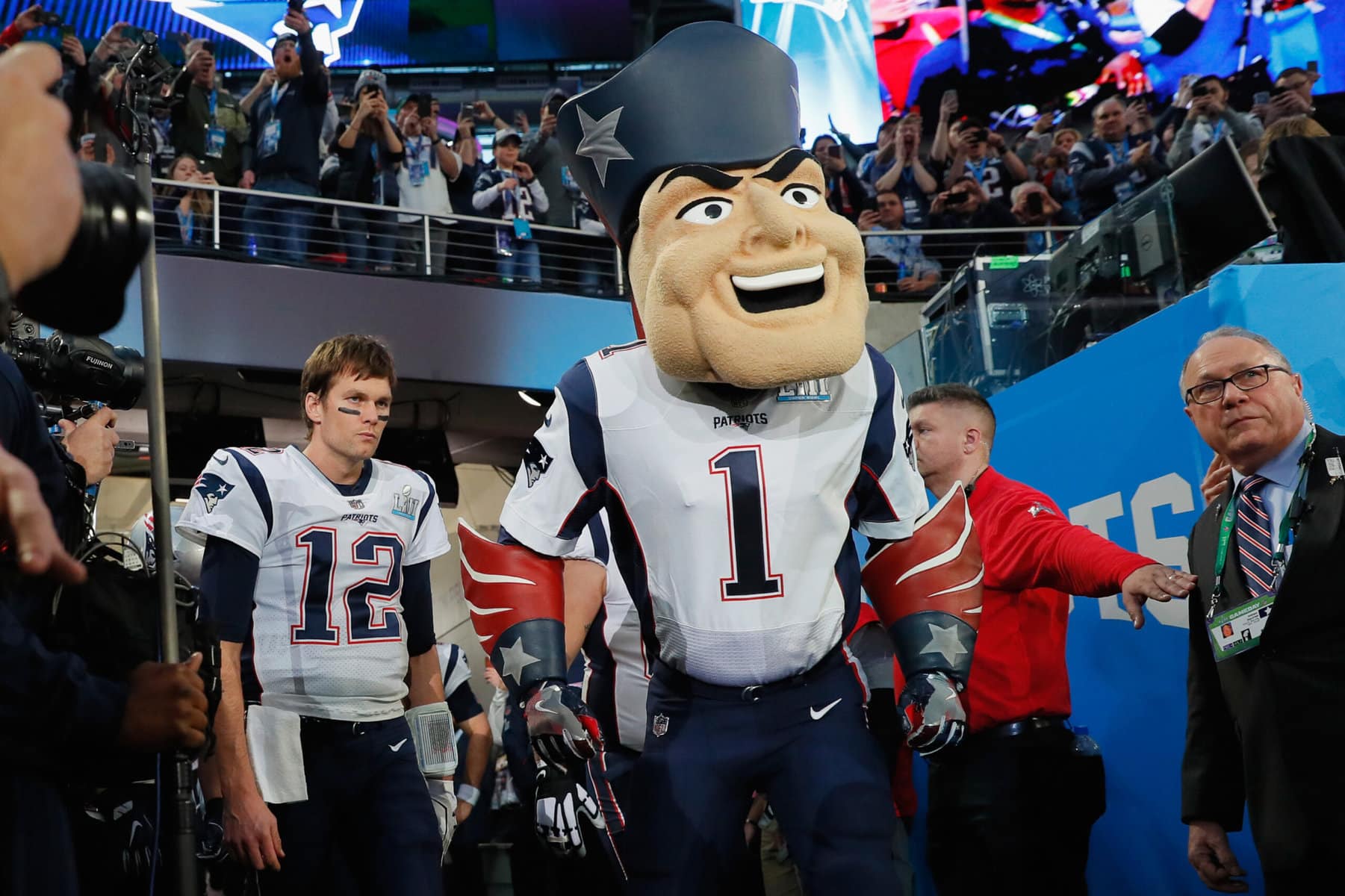 The Patriots have one of the creepiest in the NFL and he occasionally makes the headlines. Jamal Adams infamously sent the man beneath the suit to hospital after he tackled him. But Buffalo fans enjoyed this because the Pats used their mascot to troll them.