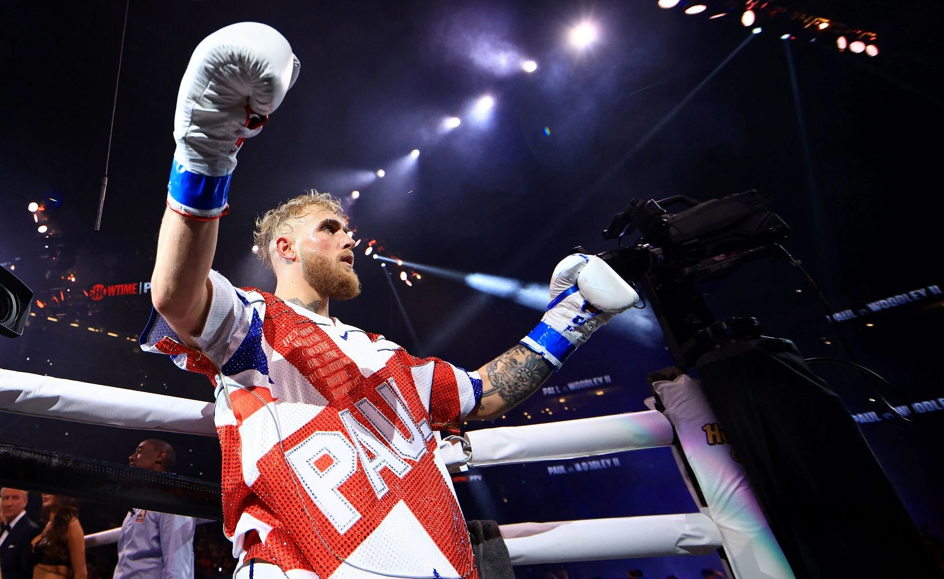 Jake Paul brutally knocked out Tyron Woodley in their rematch. The former UFC champion fought the YouTube star on two weeks’ notice but paid the price. Fans noticed a detail on his walkout uniform as he trolled his rival, Tommy Fury. The British boxer pulled out of his match against Paul on short notice.