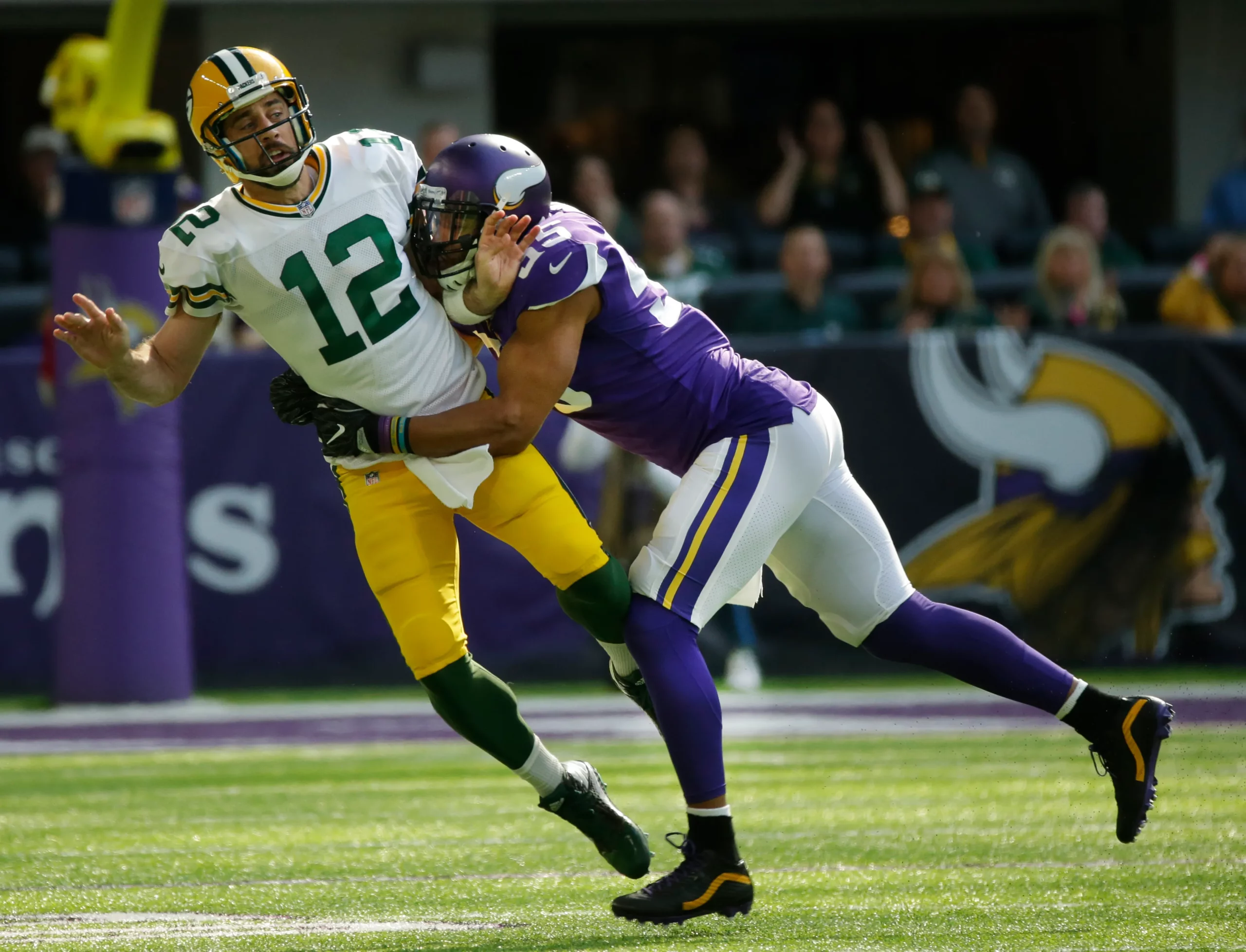 Aaron Rodgers broke his collarbone after a savage Anthony Barr collision in 2013. The linebacker shattered the quarterback in a controversial clash that enraged Packers fans. But the Vikings enjoyed the moment and like to bring it up from time to time. Perhaps they shouldn’t celebrate it but they don’t care.
