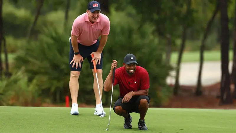 Woods quipped: “That could be on the fairway… over on seven.” For a perfectionist like Brady, that had to sting a little bit. But if you play with the big boys, you have to be prepared for a bit of ribbing.