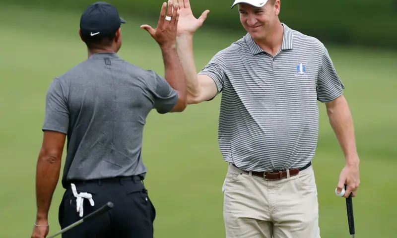 Manning knows his gameday history. The Colts icon went in hard with the trash talk as Brady faded. The quartet played without caddies because of distancing rules, but Manning still loudly theorized who he would have brought. He talked about his brother Eli and Nick Foles, the only quarterbacks to beat Brady in a Super Bowl.